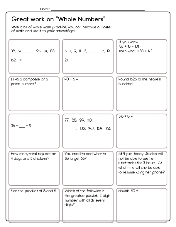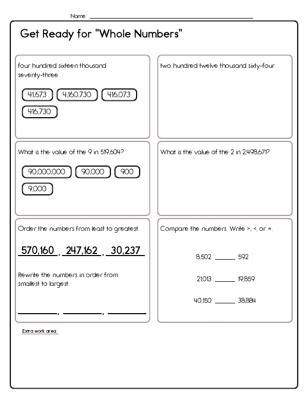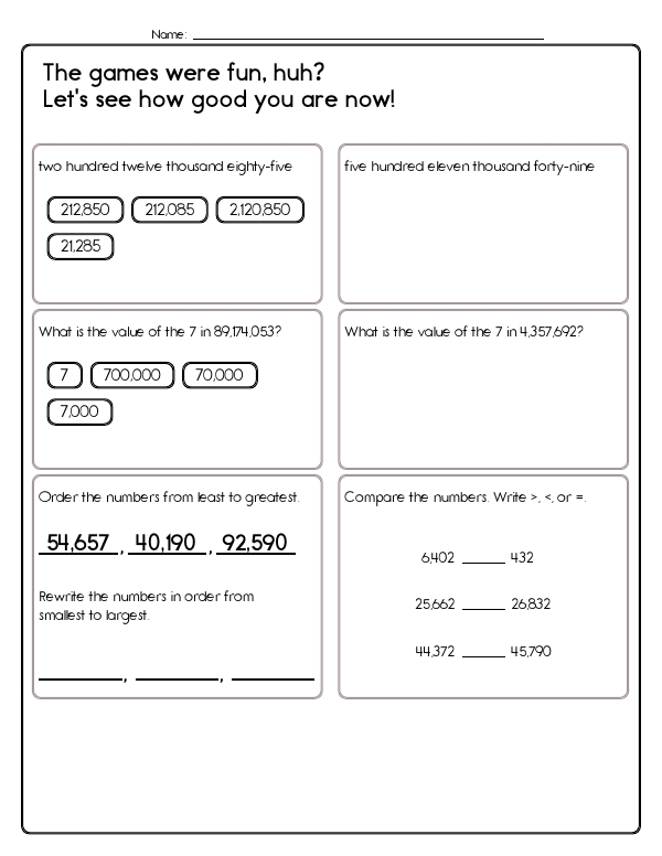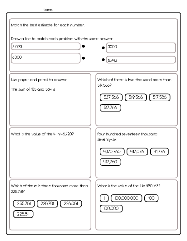 This math assessment workbook provides students with practice in reading and writing numbers in standard form. Students are also required to find sums of two numbers, identify numbers that are a certain value greater than a given number, and solve various contextual problems represented by numbers. The unit tests the ability to understand numerical expressions in word form and translate them into standard numeric form. The skills align with standard 5.NBT.A.1 and 5.NBT.A.3 and 5.NBT.A.4 and 4.NBT.B.4.