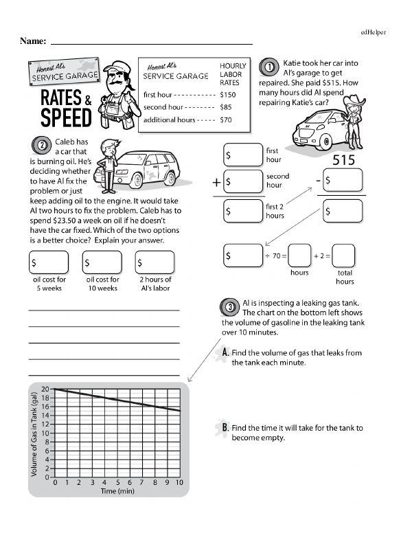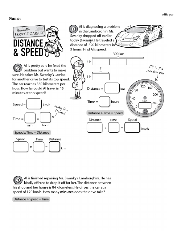 This math chapter workbook on "Rates and Speed" covers what rates and speed represent and how they apply to real-world scenarios. Practical word problems involving both unit rates and speed are included. Students will learn to convert between units, such as kilometers per hour to meters per second.