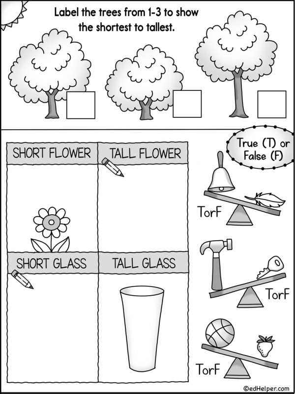 Ready to size things up? In this workbook, you'll compare items based on height, length, or weight. Follow the directions and complete all the activities.