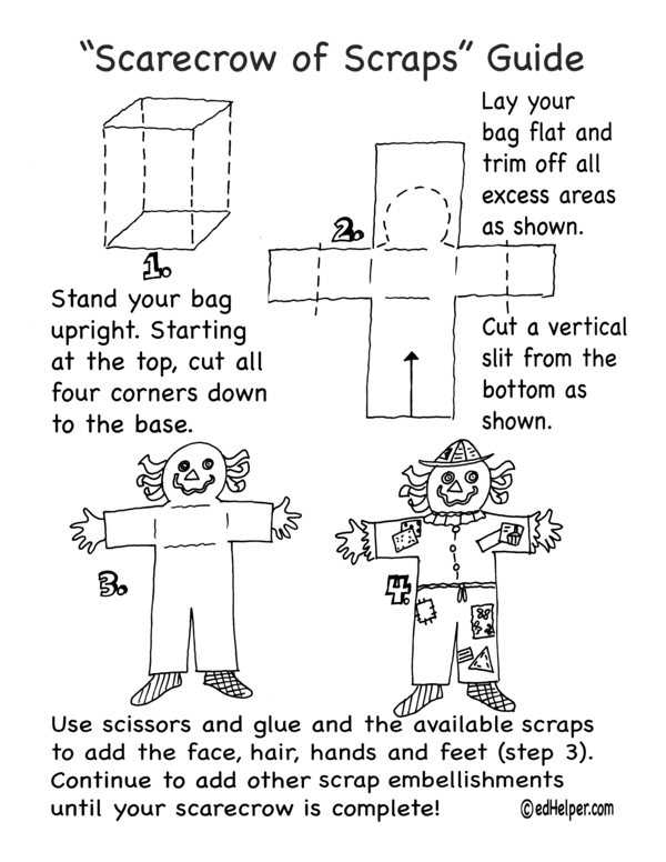 Use this craft guide to help students create scarecrows from scraps. Showcase their unique creations for all to enjoy!