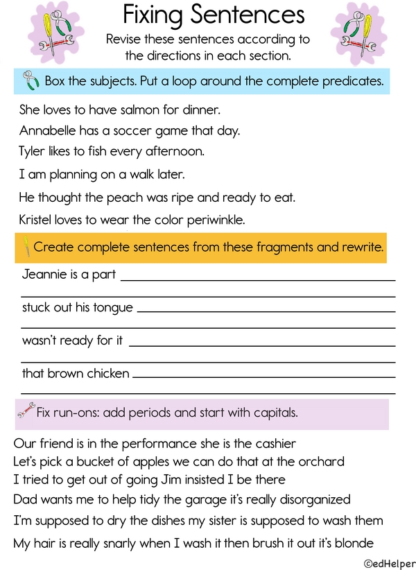 Welcome to Sentence Lab! Today, you'll do three activities: separate subjects and predicates, turn fragments into complete sentences, and fix run-ons. Grab your pencil, and let's begin!
