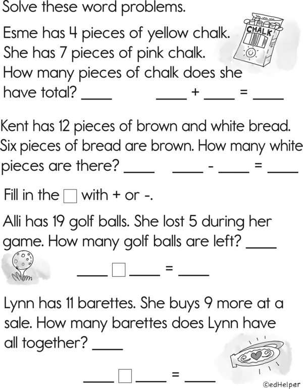 Time to add and subtract! Practice counting up to add or counting down to subtract. Learn how to use number bonds to help with both. And if you spot a double fact, like 5 + 5, use it to solve the problem faster! You're almost done. Just finish four more word problems to wrap up the challenge.