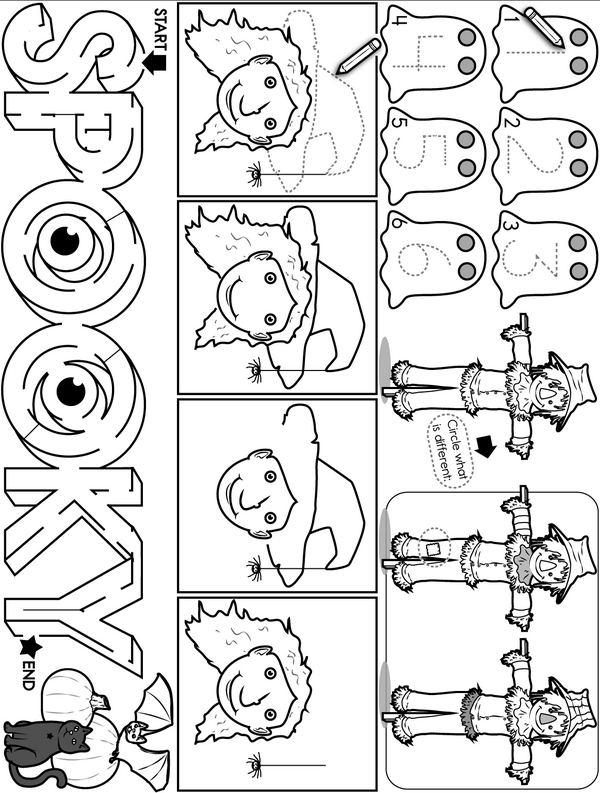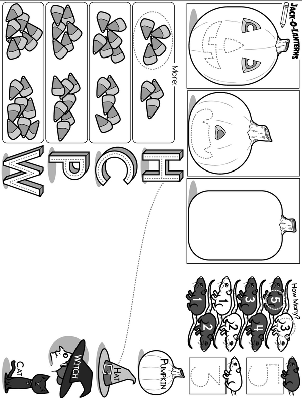 Are you ready for Halloween? Let's get the fun started as you trace, draw, count, and match. Grab your pencil and dive in!