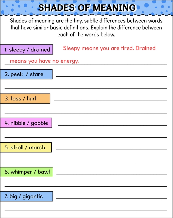 Check out each pair of words! They have similar ideas, but their meanings are different. Can you define each word and explain how it is different from the other?