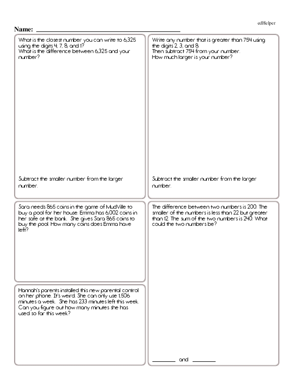 To master subtracting larger numbers, kids can use strategies and practice methods. First, they should solidify their understanding of basic subtraction facts and place value concepts. Practicing subtraction in smaller segments, such as breaking down large numbers into hundreds, tens, and units, can make the process more manageable and help understand regrouping (or borrowing). Using visual aids, like number lines or base-ten blocks, can also provide a tangible understanding of the subtraction process.