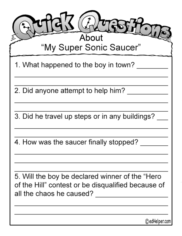 How will the story of "My Super Sonic Saucer" end? Have students answer five quick questions, then create their own ending. Use this fun workbook to encourage everyone to become a great storyteller!