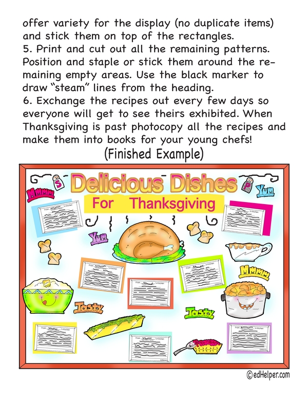 Use this "Delicious Dishes for Thanksgiving" kit to decorate your classroom with recipes of your students' favorite Thanksgiving foods. With its colorful design and playful visual sound effects, this bulletin board is a feast of flavors and holiday fun!