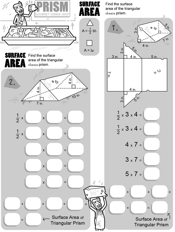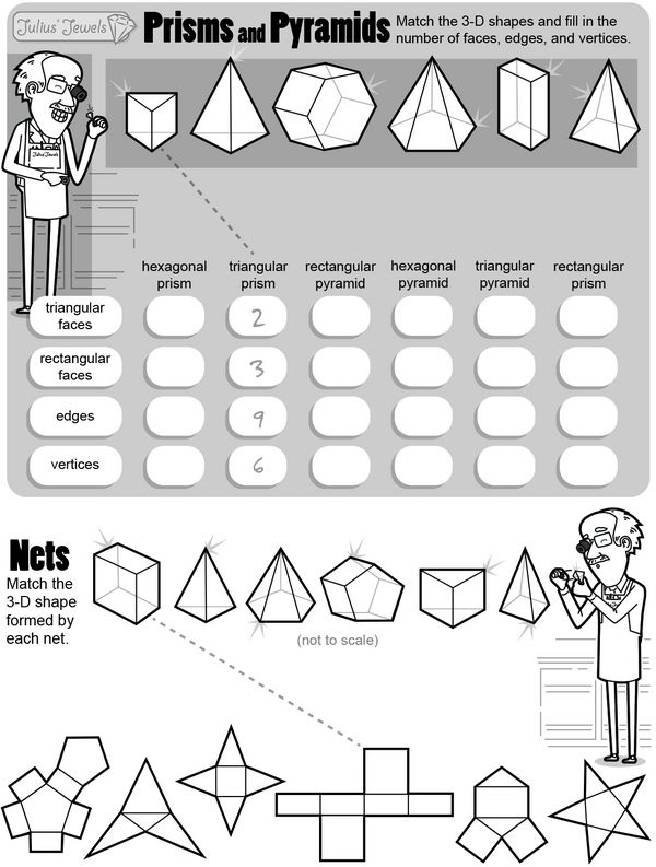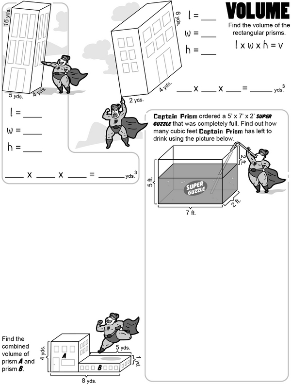 Are you ready for a three-dimensional challenge? This workbook explores various three-dimensional shapes, including cubes, prisms, and pyramids. You'll practice calculating their surface areas and volumes. Dive into the puzzles and get ready to meet Captain Prism!