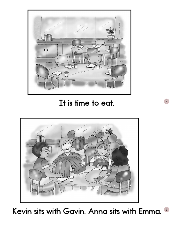 This narrative is a simple, playful tale about four friends - Kevin, Gavin, Anna, and Emma - having a meal together. Kevin enjoys his jello, Gavin munches on pretzels, and Anna relishes her apple. However, Emma forgets her lunch, forcing Miss Kay to share her goldfish, leading Emma and Kevin to put their goldfish into water and jello. The tale concludes with Gavin generously sharing his pretzels as they set off on a fishing expedition.