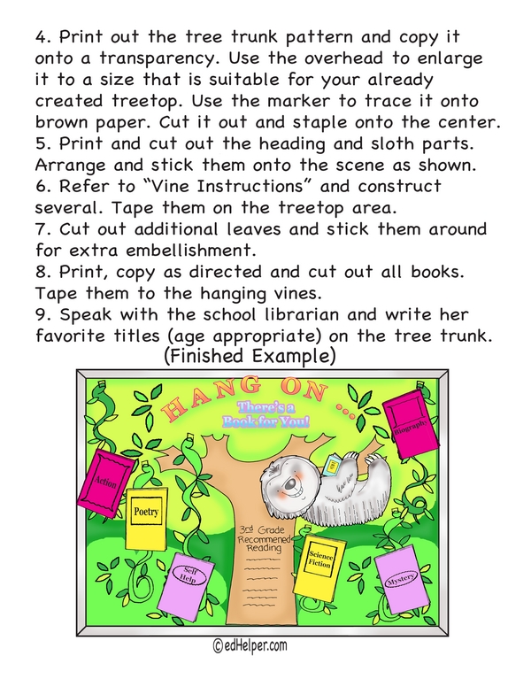 Transform your bulletin board to celebrate the love of reading! This display kit features six book genres dangling from the tree's vines, with your suggestions on the trunk. A smiling sloth hanging upside down with a book drives home the idea that there's a book for everyone to enjoy!