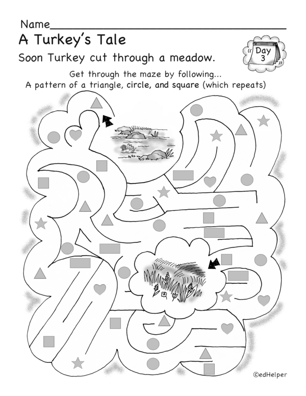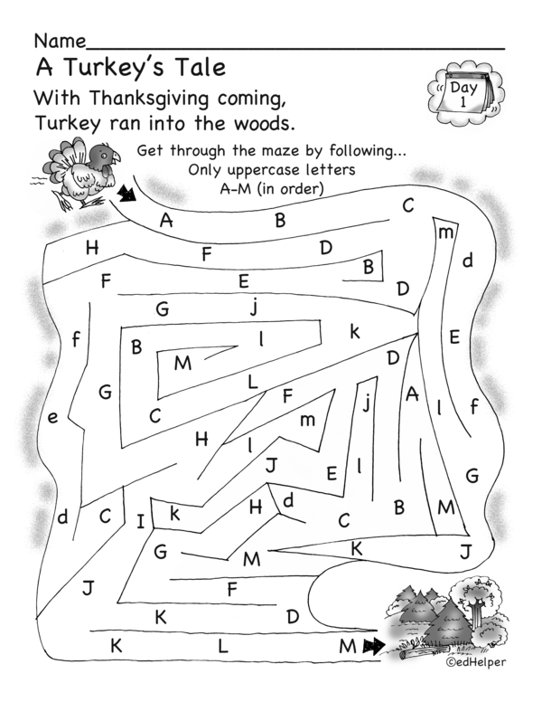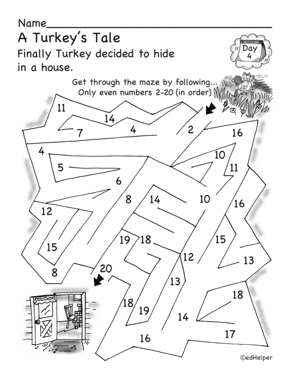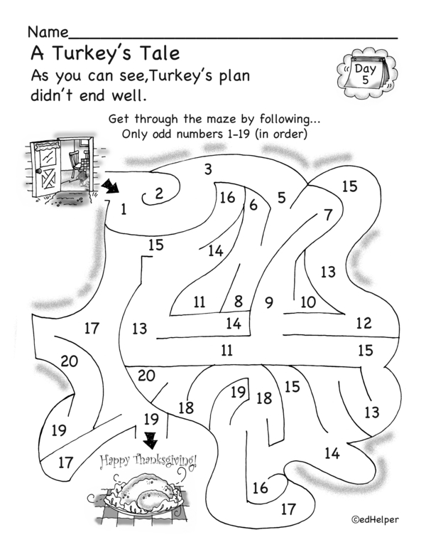 Gobble, gobble! Use this fun pack featuring a turkey zigzagging its way to the Thanksgiving table. This set includes five worksheets, each with a different maze to keep kids engaged as they count down to Thanksgiving!