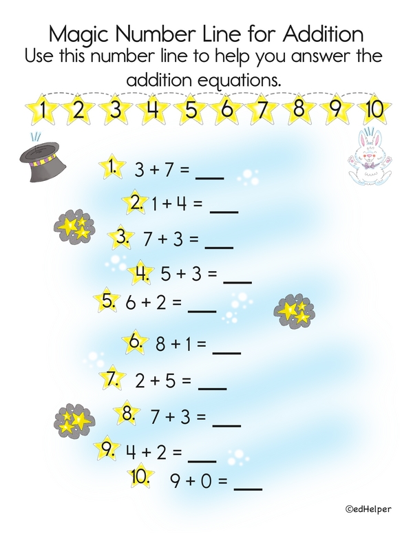 Let's add! Follow the sparkles to solve ten addition puzzles.