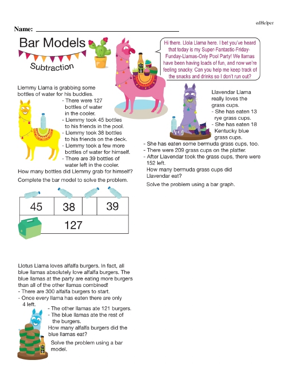 The workbook "Using Bar Models: Addition and Subtraction" continues practice to help students understand how to visually represent and solve addition and subtraction problems using bar models. This involves teaching students to translate word problems into visual bar diagrams. Using this workbook, students practice using bar models to solve real-world problems, compare quantities, and understand the inverse relationship between addition and subtraction.
