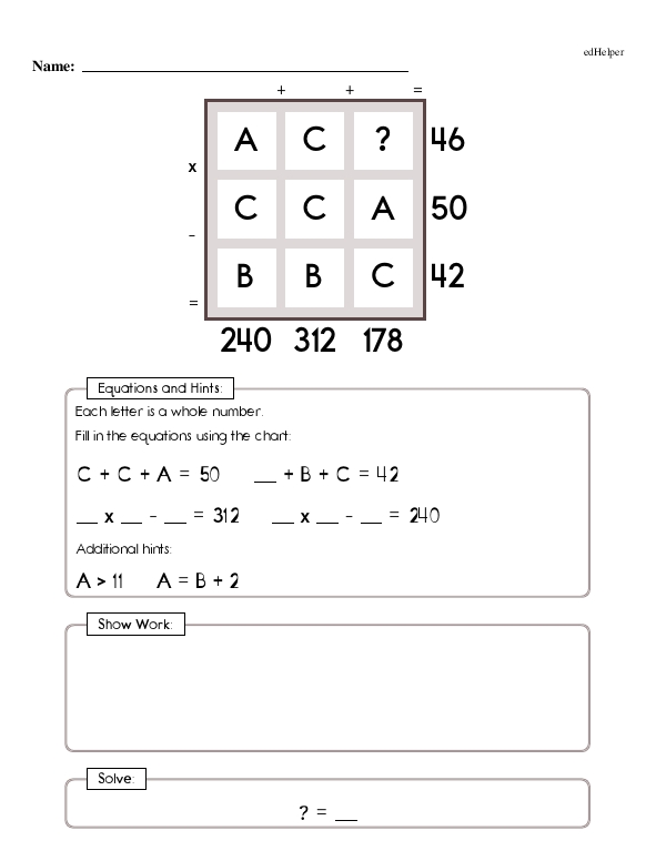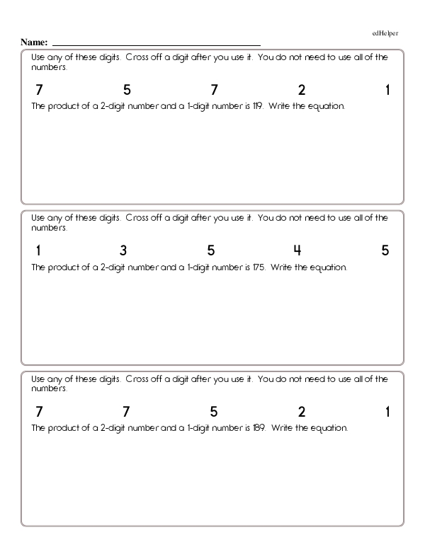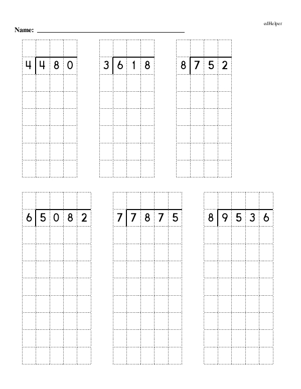 This math chapter workbook on "Whole Number Multiplication and Division" includes word problems to build skills in interpreting and modeling real-world scenarios in multiplication and division. Along with word problems, kids will be challenged with a mix of equations to practice the order of operations. One page includes a multiplication chart puzzle where the rows and columns have missing numbers, so kids must use deduction, multiplication, and division to solve the puzzle. Practice also includes long division problems such as 740 divided by 4. Students will start by seeing how many times 4 fits into the first digit of the dividend, 7. Since 4 goes into 7 once, they will write 1 above the line. And they will continue in this way to solve.