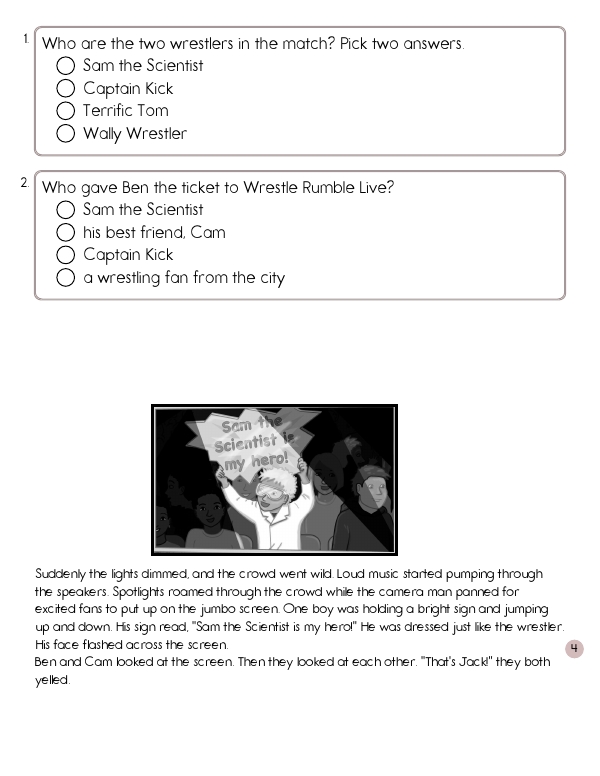 In this story, on the exciting night of Wrestle Rumble Live, Cam and Ben unexpectedly stumble upon their friend Jack in the crowd, dressed as their much-adored wrestler, Sam the Scientist. As the night unravels with a captivating wrestling spectacle between Sam the Scientist and Captain Kick, Cam makes some unexpected connections about Captain Kick. Jack's dramatic fall in front of the ring brings a twist to the wrestling drama. The story concludes with an exciting cliffhanger as Cam eagerly waits to confirm his theory with Mr. Mike the next day.